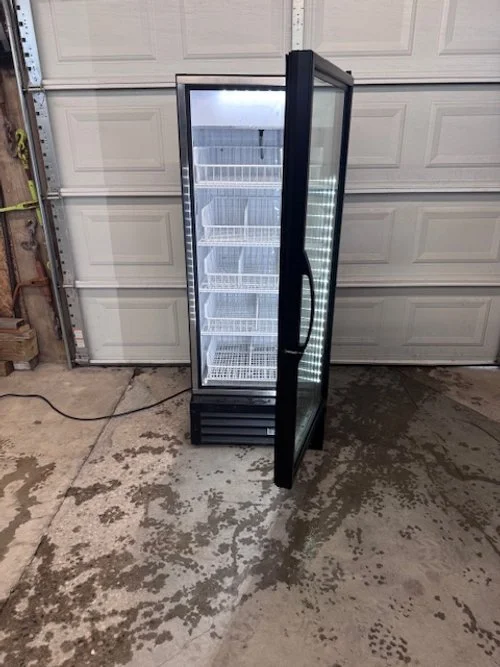 2020 model year. This Freezer uses R290 (propane) refrigerant. This unit has LED interior cabinet lights. It sells with (4) epoxy coated, adjustable height shelving and (1) base stand-off shelf, as well as (5) baskets. Perfect unit for a garage, barn, or market! Requires (220) voltage. Dimensions: 63” Tall X 25” Wide X 25” Deep
